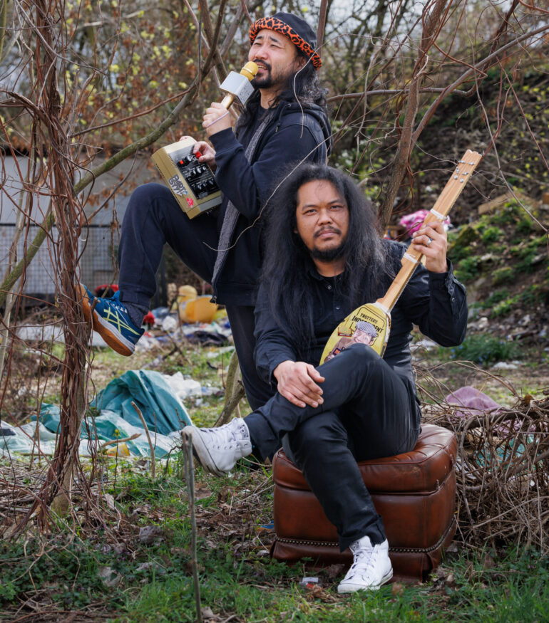 The name Takkak Takkak is a nod to onomatopoeias in drum cultures and vocal percussion found throughout Asian cultures. It echoes the artists’ love of polyrhythms and explosive trance-inducing dance musics, which they slather with unabashed doses of low-end beats, screaming vocals, and wild energy – with a good joke brewing underneath. Gleefully subverting instruments from DIY junk instruments to slapdash electronic hacks, they bend notions of the traditional and the contemporary by pulling from their knowledge of asian traditional and underground musics, multiplying these with inspirations the world over to create passport-free music that you feel like you might have heard before, but can’t tell where and when. Their namesake debut album, out 7 June 2024 on Nyege Nyege Tapes, is an impressive balancing act: Takkak Takkak navigate their cross-continental palette with not only knowledge and skill, but a refreshing level of humor. This makes their music as infectious as it is fearless – it’s experimental, sure, but Pribadi and Ishihara are having a blast, and they don’t care who knows.